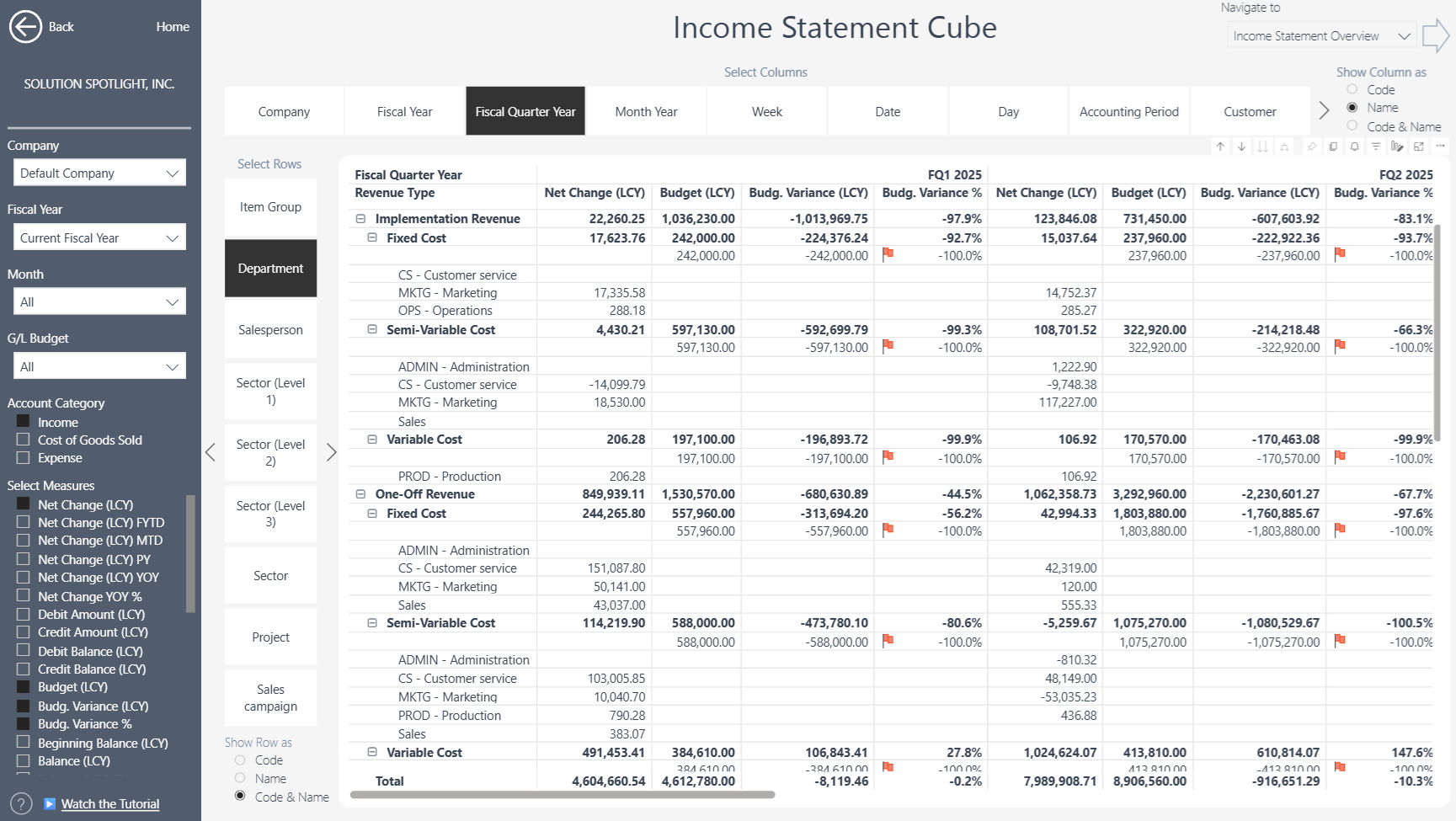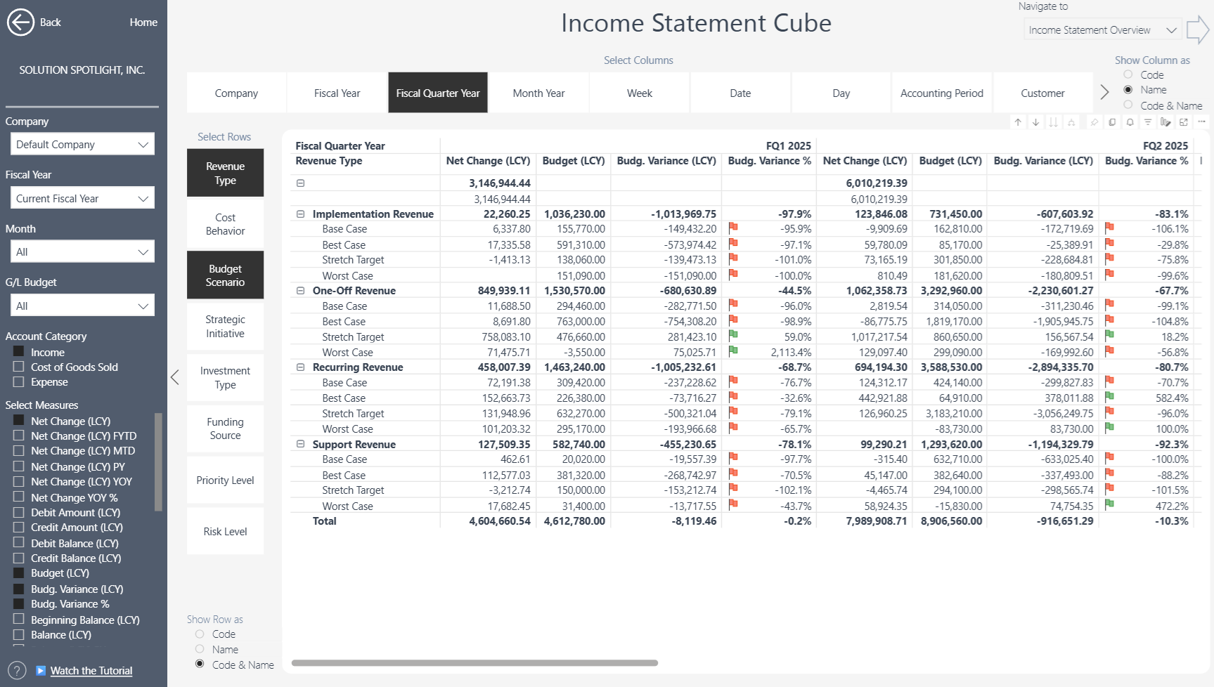 Finance Insights not only supports these custom Dynamic Budget attributes, but fully integrates them into the reporting model, so you can: