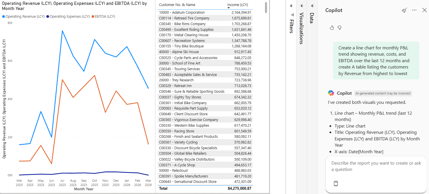 Copilot sits on top of your BCI semantic model, so it already understands: