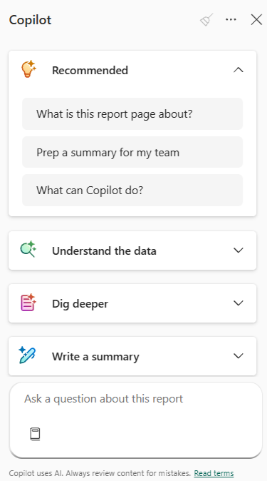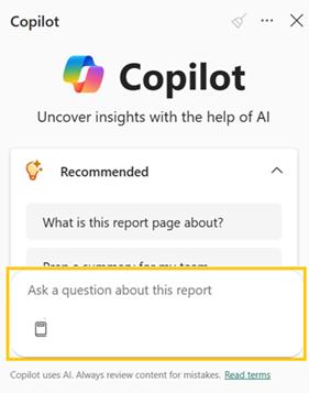 Select the Copilot icon and start analyzing the report.