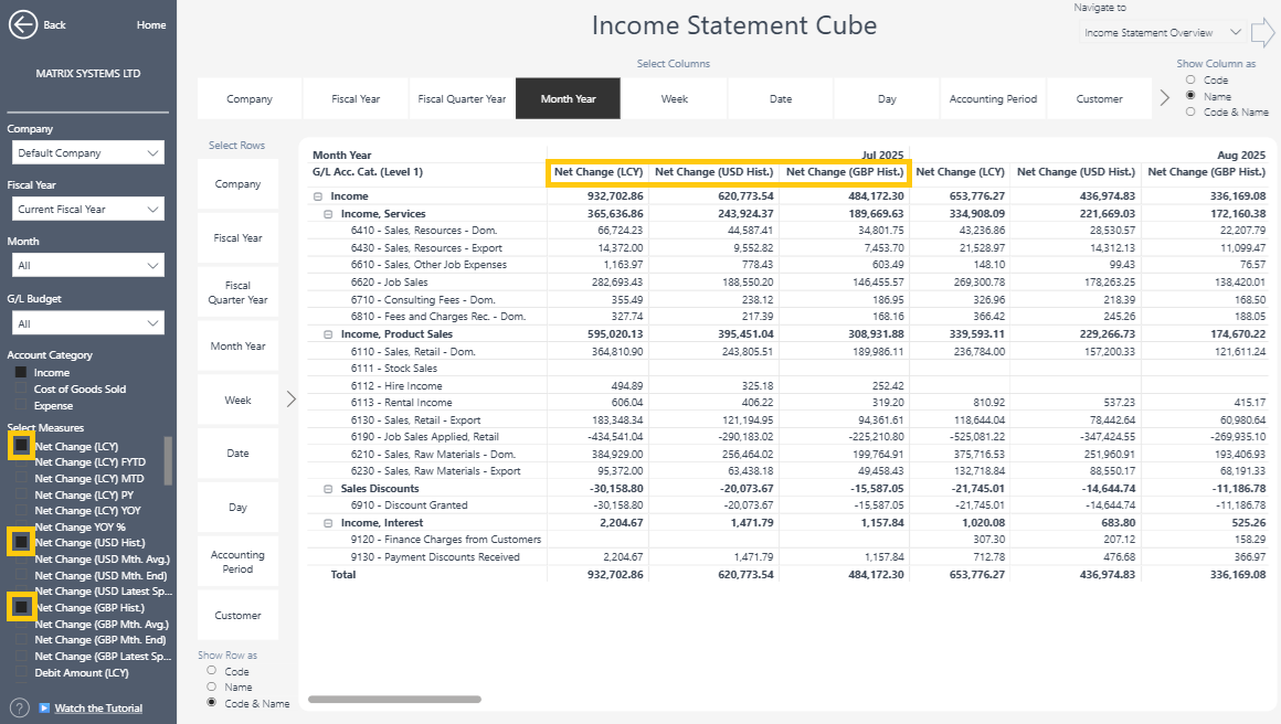 Multi-Currency Reporting allows you to convert Local Currency (LCY) into Reporting Currencies (RCY), giving you the flexibility to analyse financial and operational data across multiple currencies with accuracy.