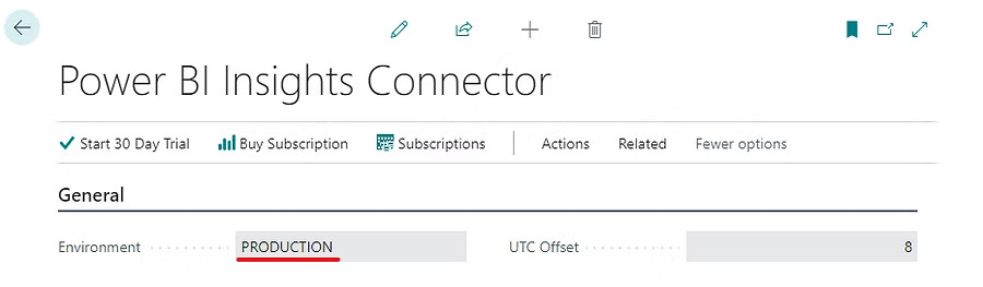 Install the Power BI Insights Connector app in your Production Business Central environment: