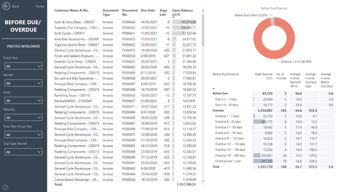 Our extensive range of 10+ standard receivable reports will give you clear information about before due and overdue balances by aging groups, allowing you to identify customers who pay on time or have overdue invoices.